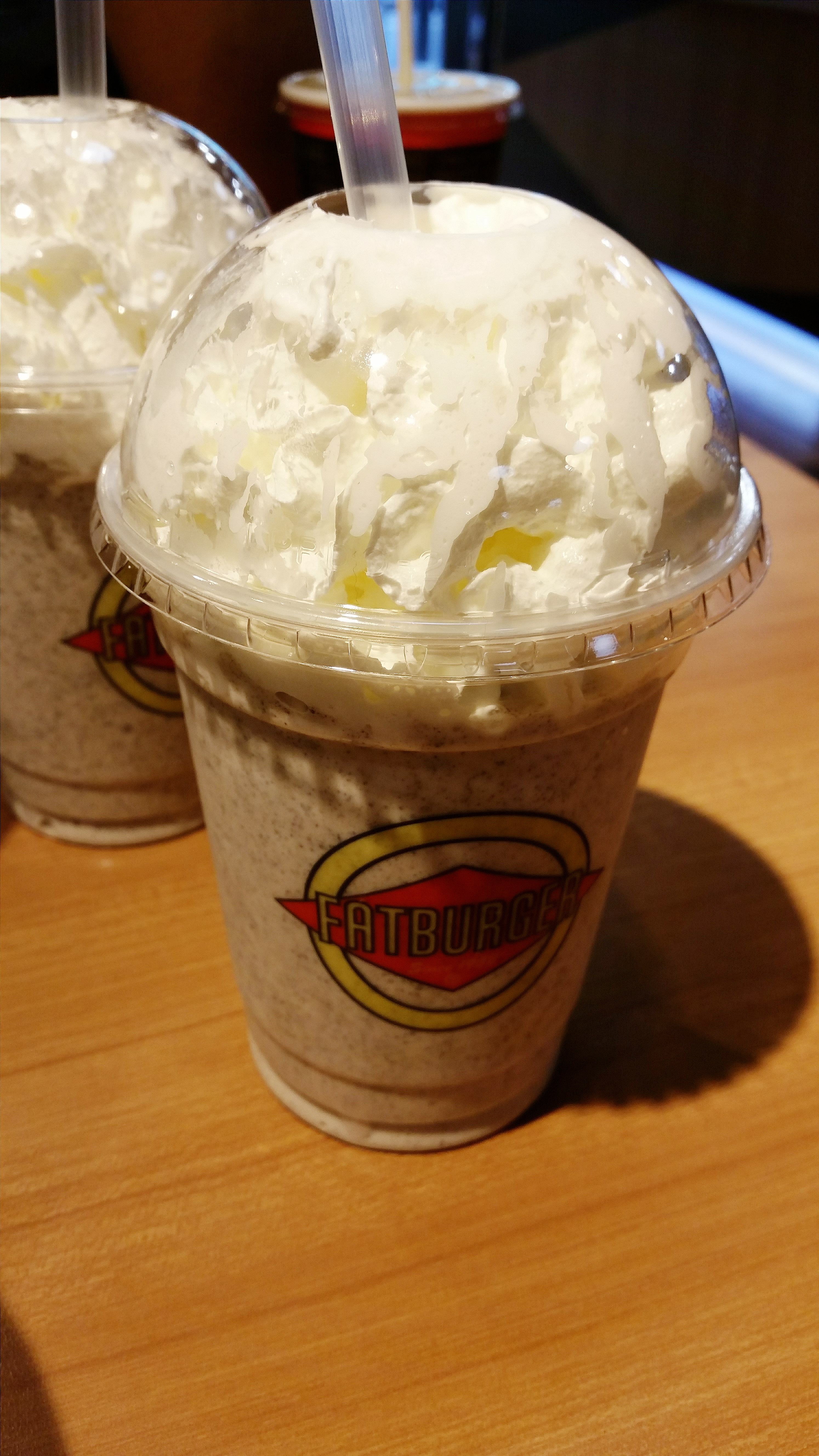 I visited FatBurger last week with Napoleon, Gandhi and the Terminator. Our order included a regular platter of wings (16 in total), consisting of a mix and match assortment of four different flavourings. I also ordered a triple fatburger (because it was the biggest thing I could see), and an Oreo milkshake.