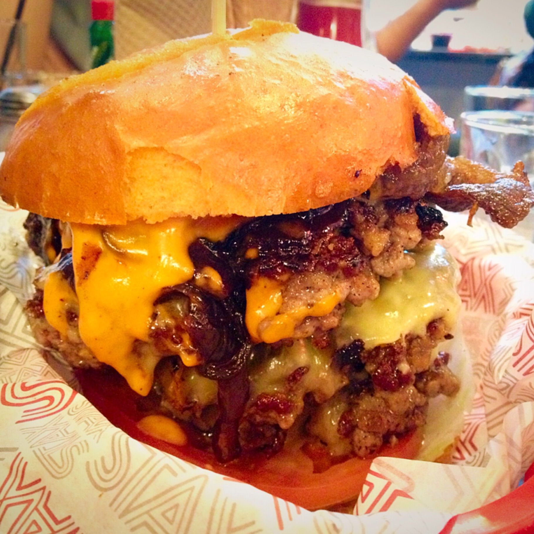 Triple Big-Stax burger with cheddar
