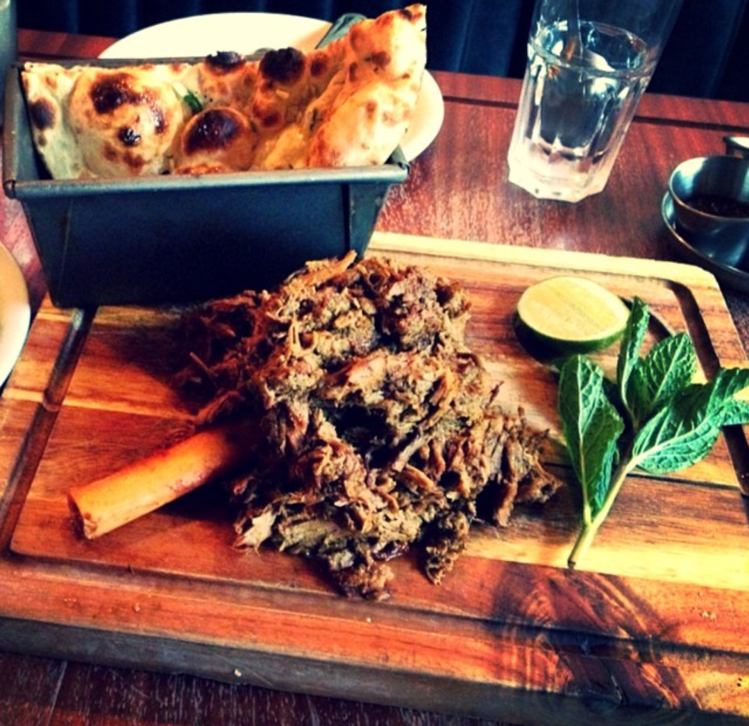 The lamb raan consisted of a leg of lamb that had been pulled, with the lamb pieces covering the bone from which it came. The lamb was soft, crumbly, and tender, and had a beautiful flavour to it with the hints of chilli, garlic and pickle escaping from the meat, which made it slightly addictive to say the least. The garlic naan was soft and warm (at least for a while), but I felt it needed a stronger hint of garlic. The gunpowder potatoes meanwhile, are aptly named, straight from the grill with a wonderful smokey essence that is enhanced by the herbs and spices they’re covered in.
