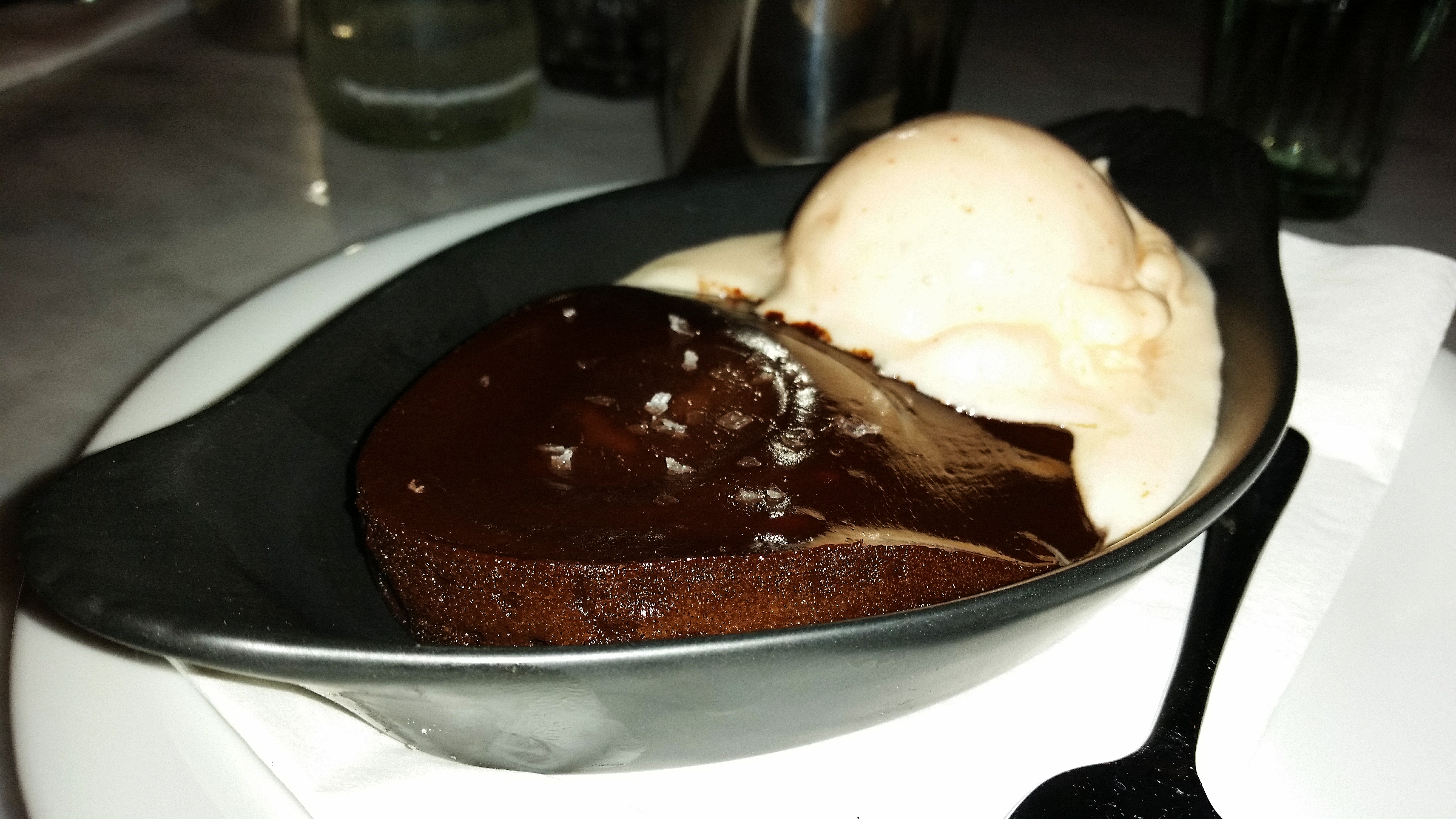 Faced with the risk of being either banned from Dishoom or being hospitalised, we risked the integrity of our abdominal walls further with dessert. The Dishoom chocolate pudding was thick, rich, and gooey, with a smooth sweetness that was accompanied by random bursts of sharp, bitter contrast from sprinkles of rock salt – a clash that worked in perfect harmony alongside the fiery kick of the accompanying chilli ice-cream, which delivered a sharp and powerful kick to the throat.