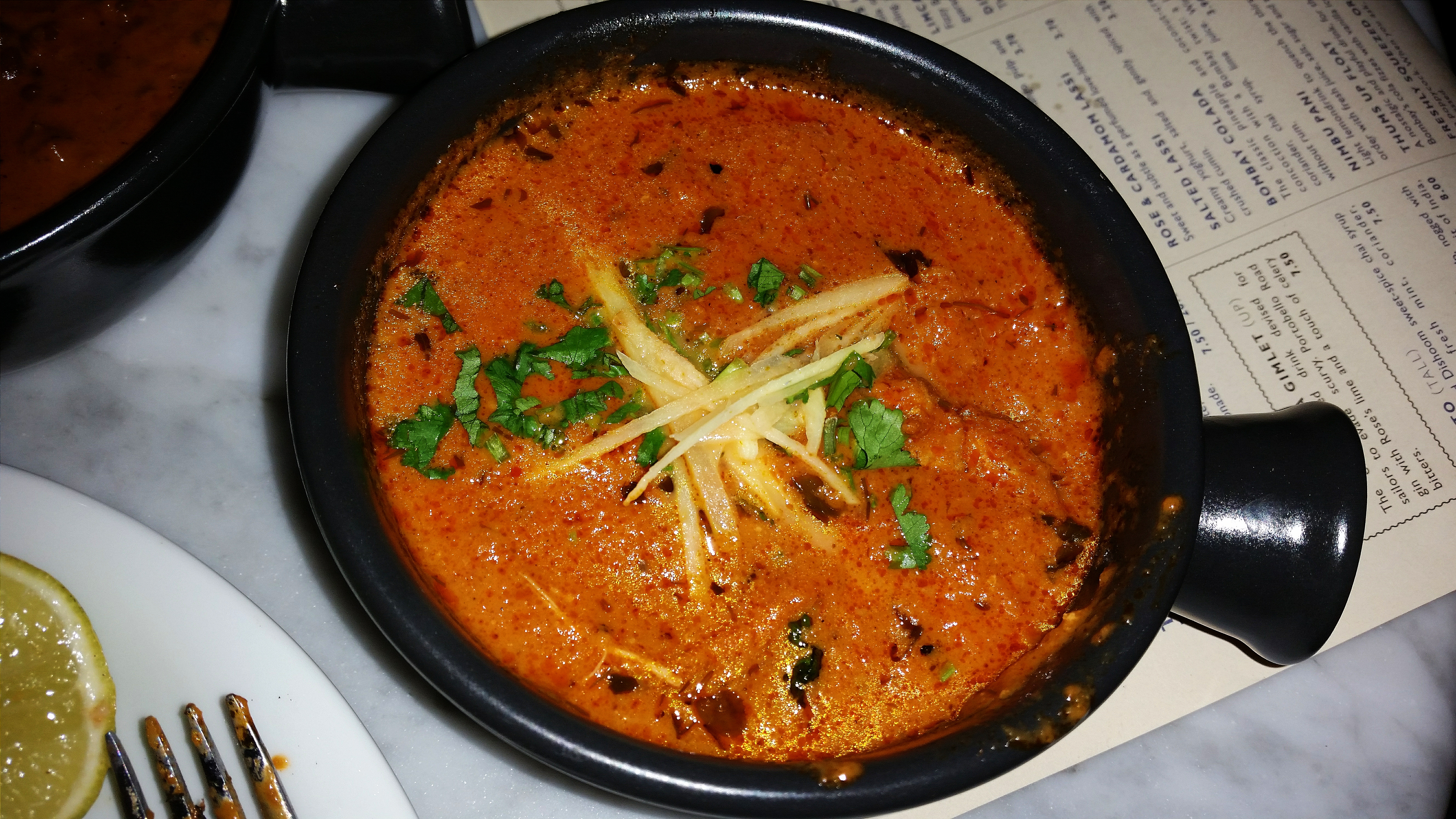 The prawn koliwada greeted me on my second visit. Consisting of large, well-cooked, spicy prawns, lightly covered in batter and served with a tamarind and date sauce, they were bursting with flavour, a perfect blend of sweet and spicy. We shared two bowls amongst four of us. They were so addictive that part of me wanted to pin my friend’s hand to the table with a fork or “accidentally” drop the overhanging lamp onto his head and temporarily knock him out cold. I didn’t of course, because I’m a nice human being who likes sharing. Sometimes. The mango and fennel lassi I ordered to accompany my food was fairly thick, with a subtle, neutral sweetness to it, but dominance was taken more so by the yoghurt than the mango. As a result, it possessed a fairly neutral flavour, with a subtle tang and a slight sour touch, accompanied by sudden, aromatic bursts of fennel whenever one of the seeds was broken into.