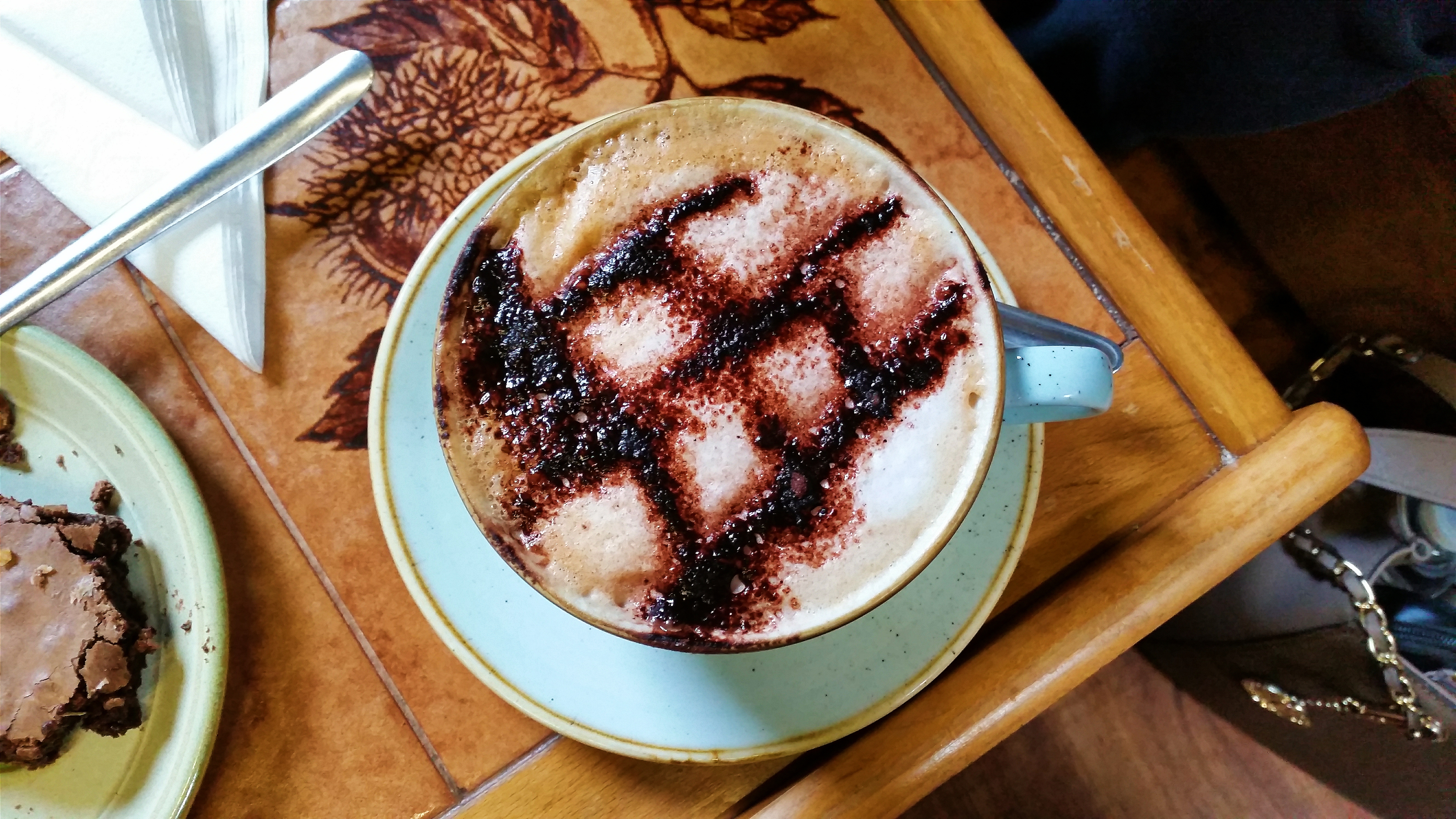 Just a few weeks later however, and my secret den had become exposed, as Aubergine , Mrs. Bean, Little Miss Worry and Curious George barged into the one place I thought I could escape from them. In a last ditch effort, I tried to hide behind my large cappuccino, but alas, it wasn’t quite large enough, and my dearest colleagues detected the gravitational field of my gigantic forehead from a mile away. The cappuccino was presented with a very thick layer of foam, which possessed a lovely essence of cocoa, and though it was thin in body and moderate in strength, overall, there was a reasonable balance between the constituent espresso, steamed milk, and froth.