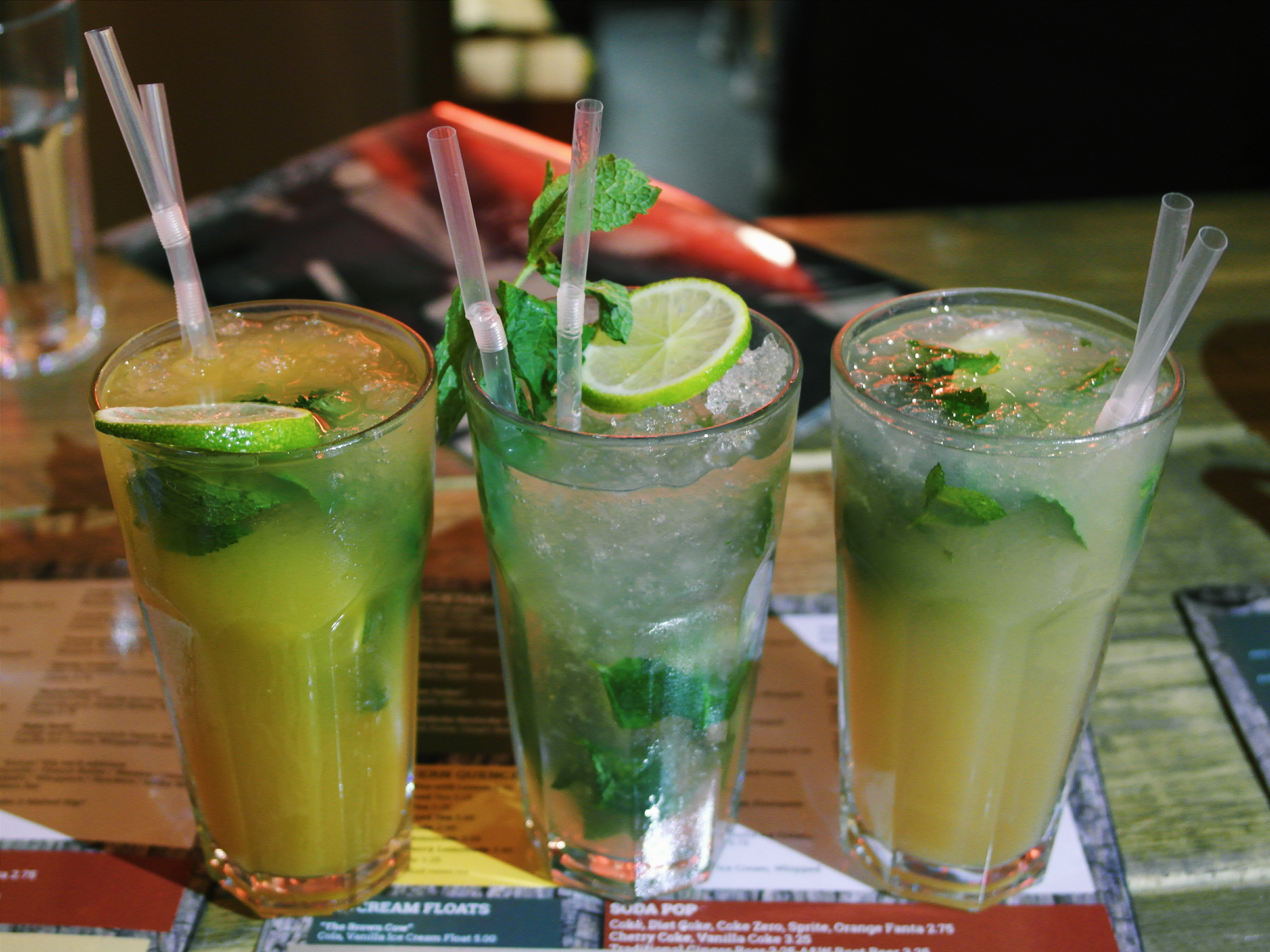 Left to right: Mango Mojito, Regular Mojito, and a Peach Mojito