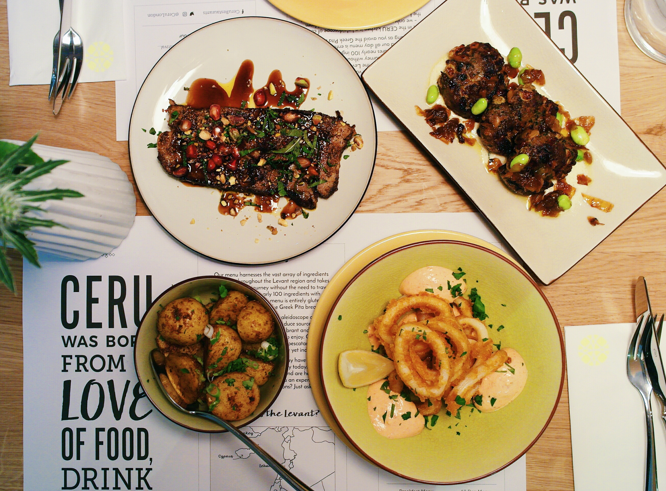 For us, watching Ceru grow from a series of small pop-ups to a now fully-fledged restaurant, has been a rather endearing process – (particularly for Steak, who at 4ft 10, hasn’t had the chance to experience much growth of her own). In all seriousness however, our affections for Ceru lie beyond Steak’s vicarious sense of fulfilment, and instead, within the unique and vibrant flavours that leave their kitchen. London is full of restaurants that faithfully reproduce a particular cuisine from a particular part of the historic Levant, but very few manage to weld these cuisines together, and fewer still manage to do it so well. For this reason, Ceru stands out on the map, and its unique take on traditional Mediterranean cuisine is not to be missed.