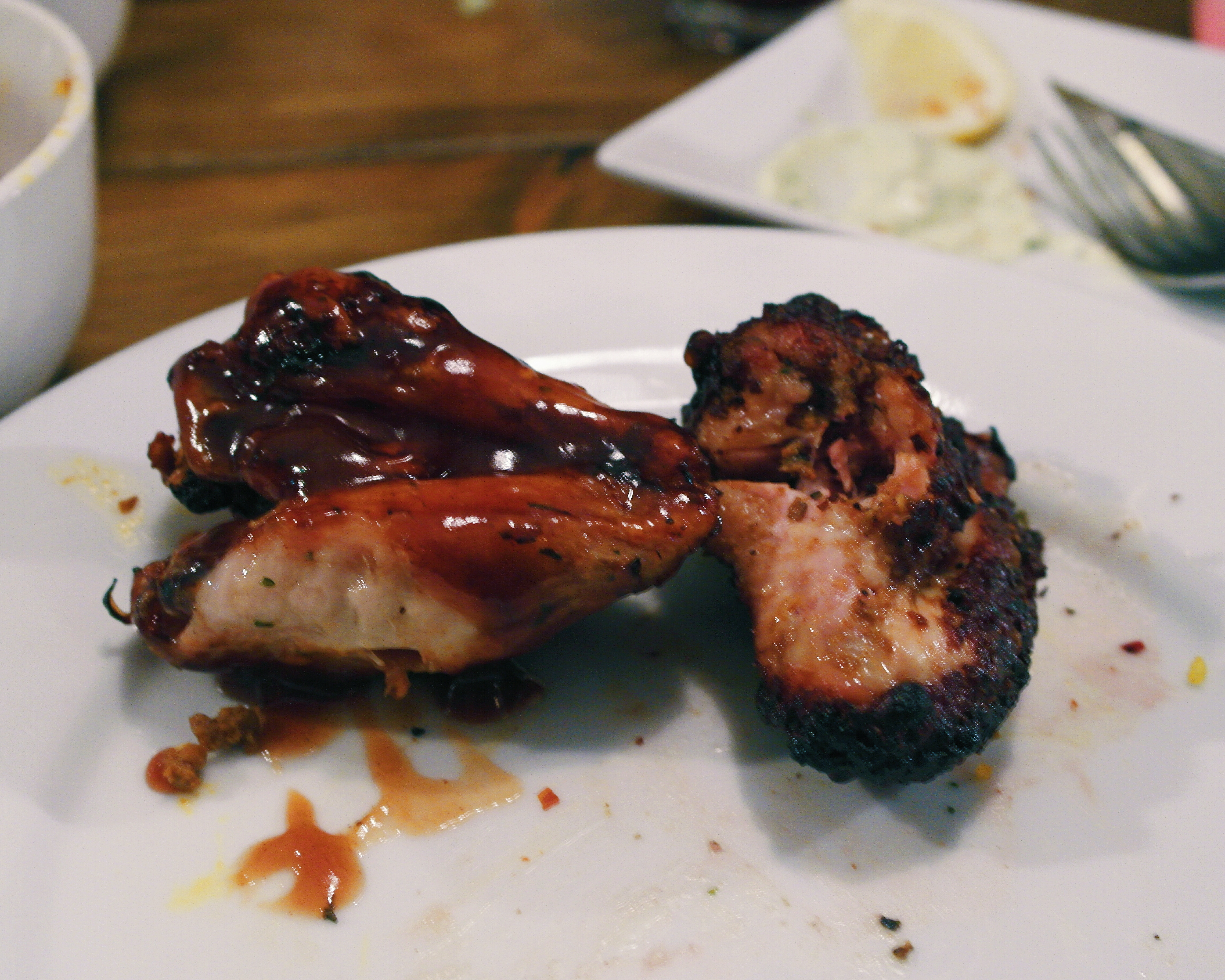 Barbecue chicken wing (left), and Chilli chicken wing (right)