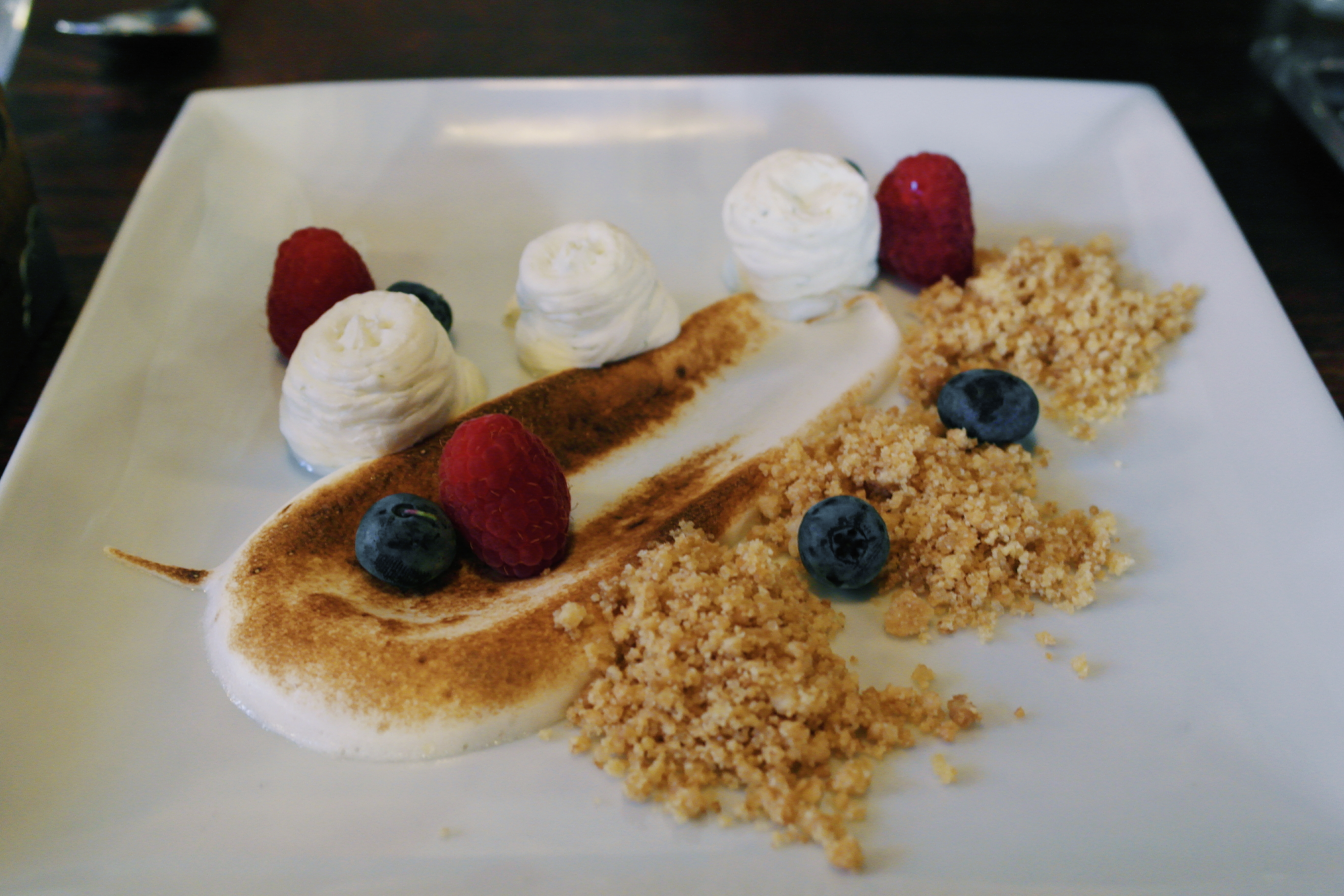 As we began negotiations to decide upon a dessert, Steak revealed that she had never before eaten a key lime pie. Flabbergasted as to how she had lived with this void in her life for so long, I promptly ordered HS&Co’s deconstructed version of this iconic dessert. A plate of ingredients arrived soon afterwards, consisting of thick, piped cream with a rich lime flavour, soft and gooey meringue, a rubble of biscuit crumbs, and an assortment of refreshing blueberries and raspberries. It was certainly an interesting incarnation, but as a traditional man, I really would have preferred a heavier, constructed version. After all, a truly successful dessert is one that leaves you needing an airlift back home.
