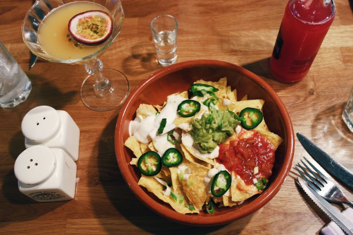 Nachos and (non-alcoholic) Martini / Champagne. The Bridget Jones diet.