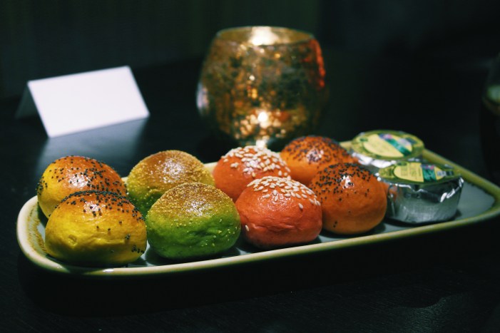 As we settled in amongst the vogue surroundings, I took a glance at the lengthy five-course menu that lay before us, and promptly called my solicitor to ensure that my will was still in order – just in case I managed to eat myself to death by the end of the night. We began with a small platter of mini brioche bread rolls, consisting of green polenta, orange poppy, yellow poppy (my favourite of the lot), and red sesame rolls – each with a corresponding colour, which did well to remind me of the childhood days I spent eating crayons. Each roll possessed its own set of nuances, and the d’Isigny butter they were served with added a rich and salty touch that satiated our appetites. (Or in the case of Halal Gems, destroyed it altogether).