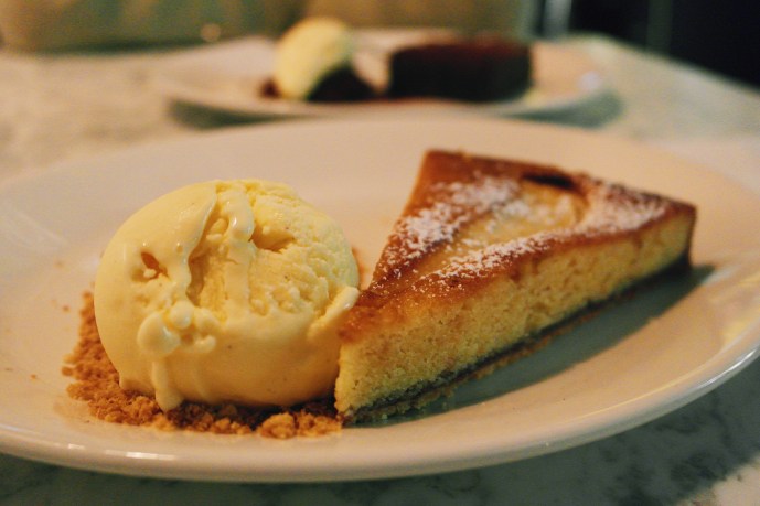 By this point of the meal, the two of us had decided that going home would be far too arduous, and instead, a trip to the nearby Bart’s hospital would be far quicker, and far more comfortable. In light of this, we ordered both desserts on the menu – a warm chocolate brownie, and an almond and pear frangipane, both served with vanilla ice cream. Alas, the warm chocolate brownie was mediocre at best, owing to a greasy, muddy texture, and a rather dull vanilla ice cream. The almond and pear frangipane fared no better, with muted flavours and uninspiring textures. Disappointingly, a warm trip in an ambulance would not be on the menu for this night.