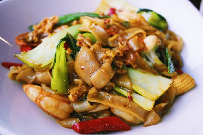 Pad Ke Mao – (Spicy noodles with prawns) (£8.65)
