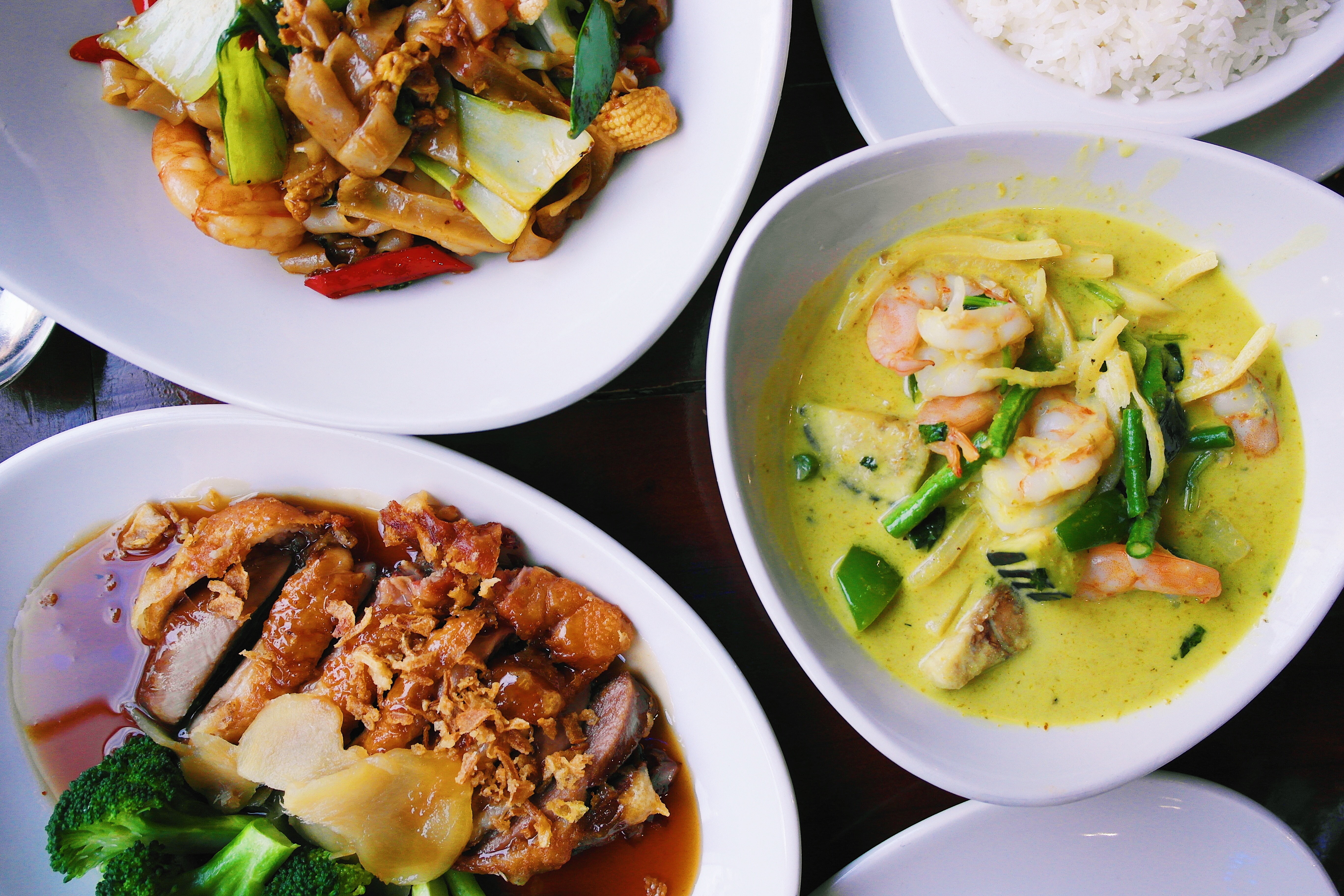 Green curry (£7.75), Pad Ke Mao (£8.65), and Pad Ma Kam (£10.95)